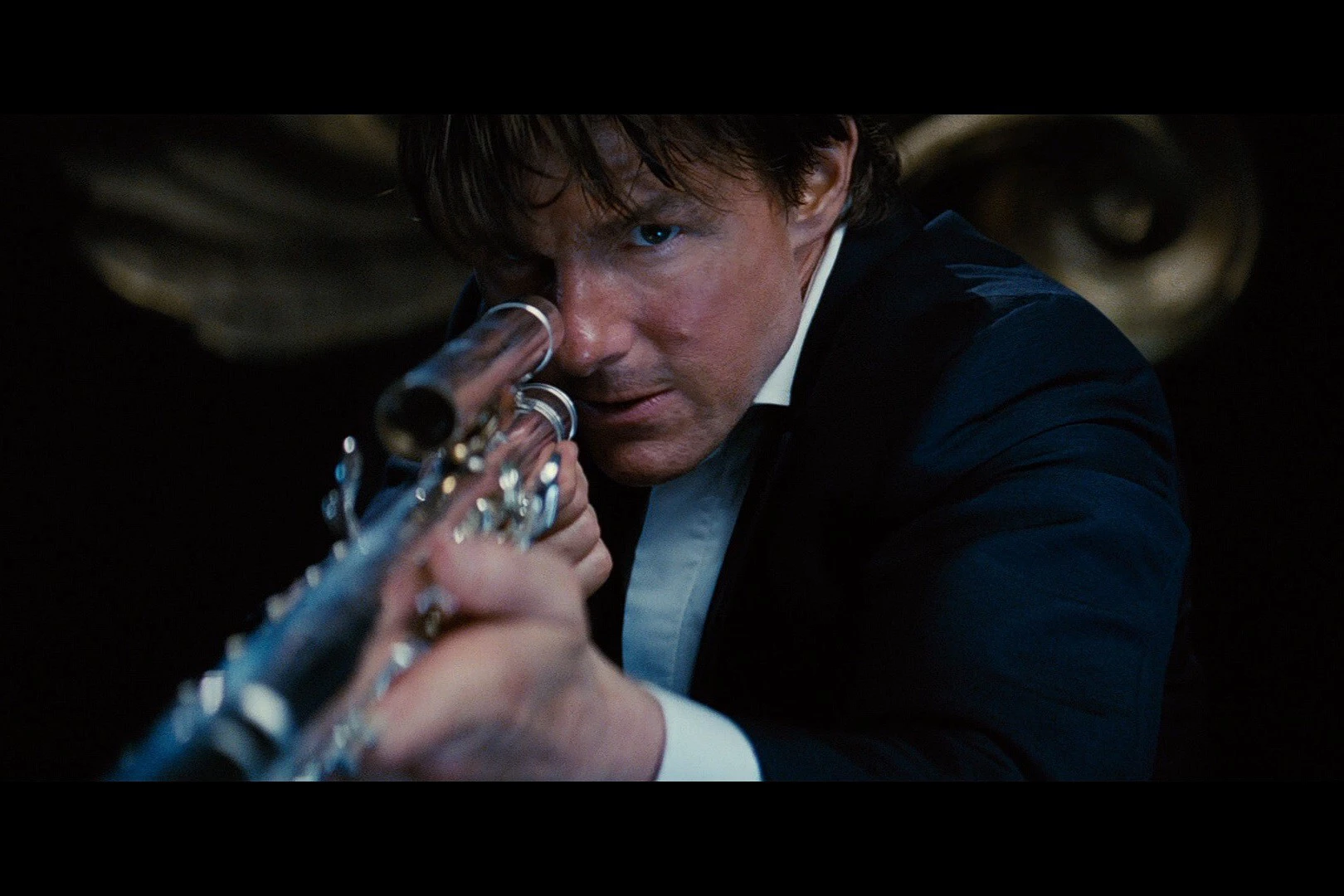 Pero aquí es donde suelen fallar la mayoría de películas, ya que cuando sube el volumen se tiende a pasar directamente a una pista musical sobre la que superponen el resto de efectos diálogos, etc. Esto no pasa en esta peli de Misión Imposible, sino que la escena esta rodada y editada con un cuidado exquisito.