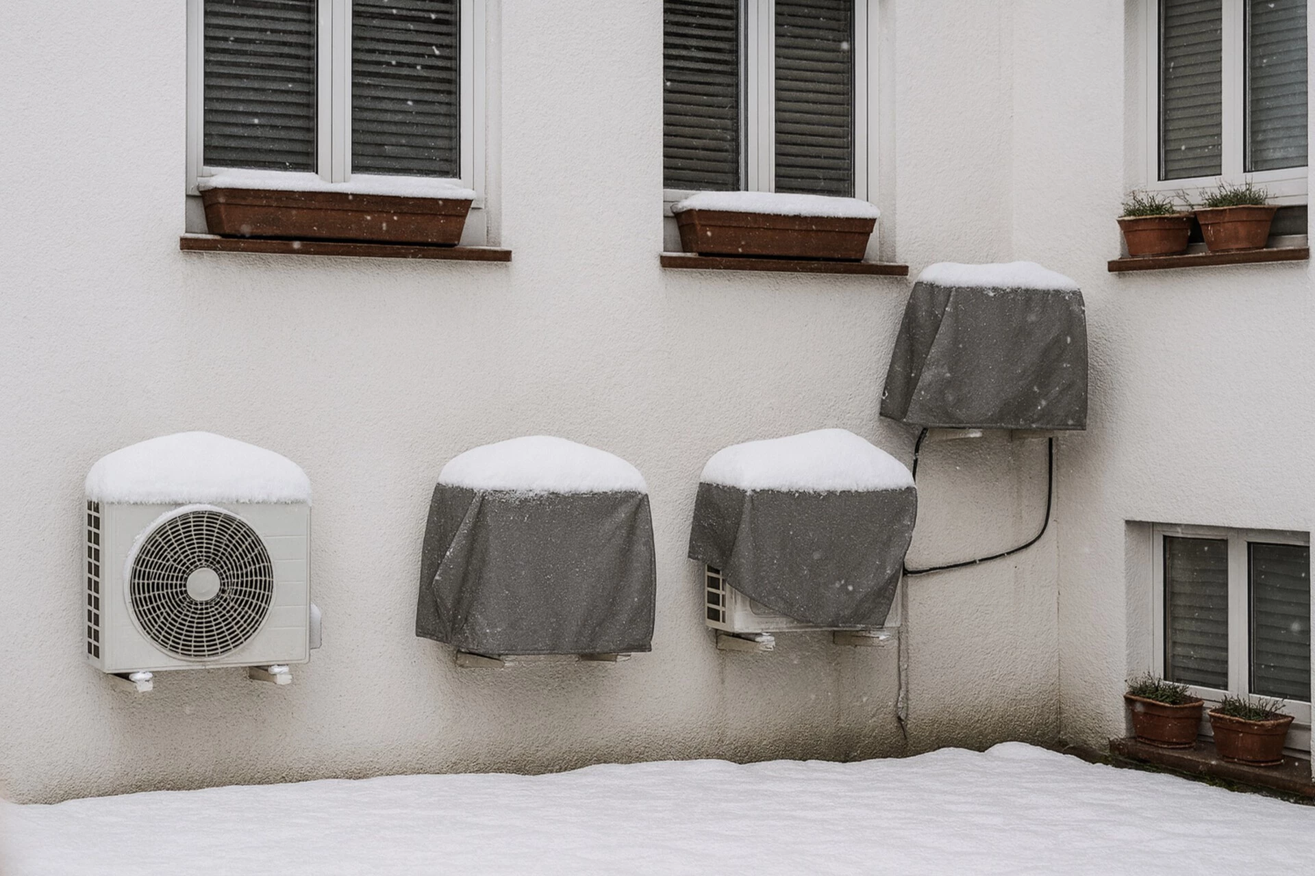 Además, en zonas con nevadas intensas, resulta conveniente que la unidad esté a cierta altura respecto al suelo para que la nieve no bloquee las salidas de aire. Según los especialistas de HVAC.com: “No recomendamos cubrir por completo el equipo con lona o plástico, pues esto puede generar moho; sí puede utilizarse una cubierta mallada para impedir hojas o ramas”.