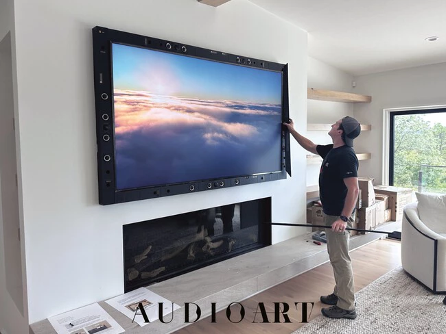 La idea tras Audio Art es tener un sistema de sonido envolvente de emisión frontal integrado y construido directamente dentro del marco con el que rodeamos a la tele o pantalla de proyección.