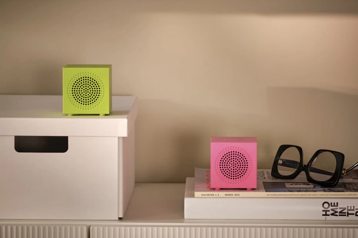 Los altavoces de Ikea han sido obra del diseñador sueco y colaborador de Ikea Ola Wihlborg. Con una forma de cubo y pequeñas patas en la base, tienen unas medidas de 7 centímetros por cada lado y están disponibles en distintos y llamativos colores (blanco, rosa y verde lima). Junto a la zona perforada en el frontal, solo tienen dos botones en la parte superior para emparejar y reproducir/pausar el contenido.
