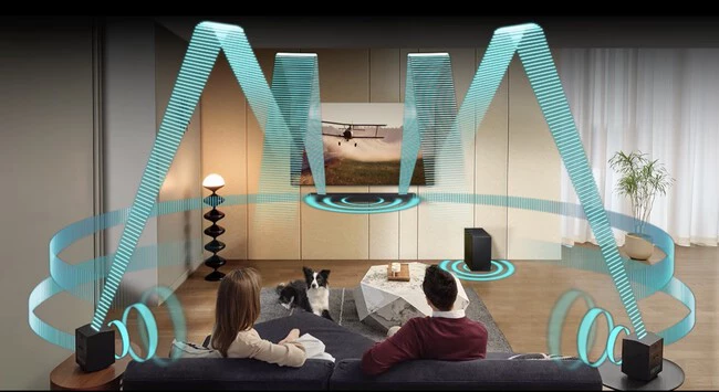 Además, el sistema de calibración automática analiza la sala y corrige ecos o resonancias, permitiendo que los altavoces orientados hacia el techo proyecten el sonido con precisión, algo esencial para recrear la sensación de altura.