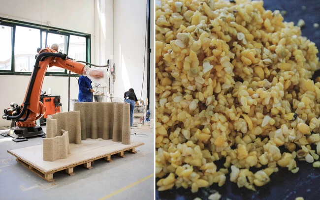 Corncrete es un material de construcción ecológico diseñado específicamente para ser impreso en 3D. El gran atractivo de este desarrollo es que, en lugar de recurrir a elementos contaminantes como los que emplea el cemento tradicional, se apoya en recursos naturales abundantes.