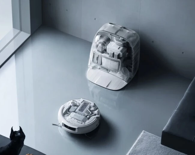 La familia ROMO está formada por tres versiones —P, A y S—, aunque la marca no ha detallado aún las diferencias de hardware entre ellas. Lo que sí sabemos es que el ROMO P destaca por su diseño con paneles transparentes, que dejan ver su estructura interna tanto en la base como en el propio robot, y por incorporar un compartimento para dispensar desodorante junto con el líquido limpiador.