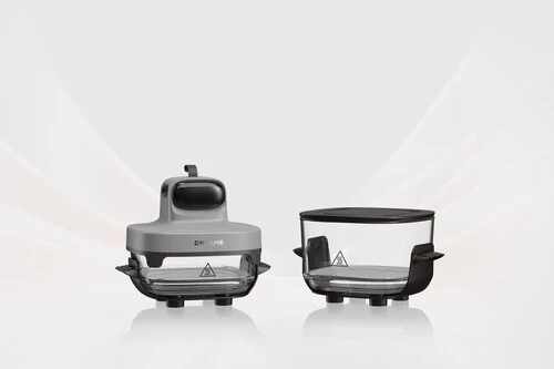 Diseño y versatilidad. Esta freidora está pensada tanto para el día a día como para llevar la comida fuera de casa. Dreame la describe como un dispositivo 5 en 1, capaz de freír al aire, asar, recalentar, gratinar y mantener caliente. Incorpora dos recipientes de vidrio intercambiables, de 2,5 L y 4,5 L, que se pueden cambiar sin adaptadores según la cantidad de comida. Presumen de que su tapa sellada permite transformar el recipiente en una fiambrera portátil, una función poco habitual en este tipo de dispositivos.