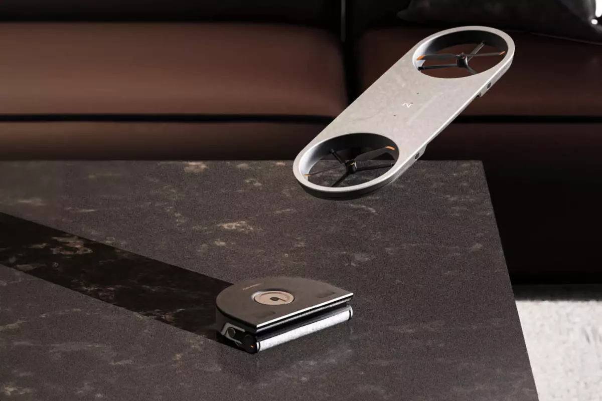 Por ahora es solo un concepto, pero promete. La gran innovación de este prototipo es que el robot principal no trabaja solo: viene acompañado de un minidron y de un robot aspirador en miniatura que también incluye mopa.
