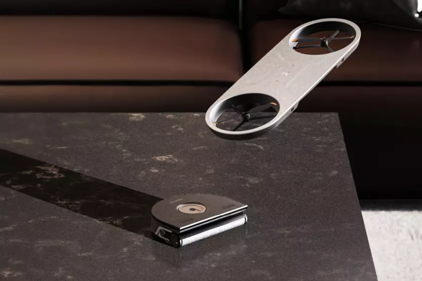 El funcionamiento parece de ciencia ficción pero es real. El dron es capaz de coger al pequeño robot y colocarlo suavemente sobre las mesas de casa para dejarlas impolutas. Cuando no está limpiando superficies elevadas, el minirobot se acopla directamente encima del aspirador principal (el de tamaño normal) para encargarse de esos bordes difíciles de alcanzar, como los zócalos.