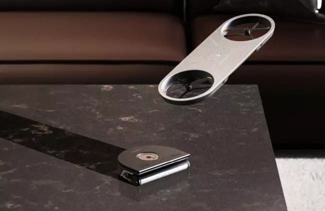 El funcionamiento parece de ciencia ficción pero es real. El dron es capaz de coger al pequeño robot y colocarlo suavemente sobre las mesas de casa para dejarlas impolutas. Cuando no está limpiando superficies elevadas, el minirobot se acopla directamente encima del aspirador principal (el de tamaño normal) para encargarse de esos bordes difíciles de alcanzar, como los zócalos.