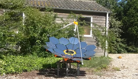 Se trata más bien de una prueba de concepto en la que como podemos ver en los vídeos la idea es construir un concentrador de energía solar en forma de luz a través de 18 espejos hexagonales que envían la radiación hasta un punto central donde una compleja la utiliza para calentar el agua.