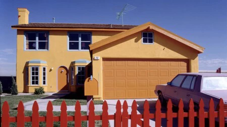 Una vivienda pintada de un amarillo chillón, con estancias en tonos naranja, verde fosforito y rosa, donde incluso las puertas y ventanas parecían sacadas directamente de una serie de animación.