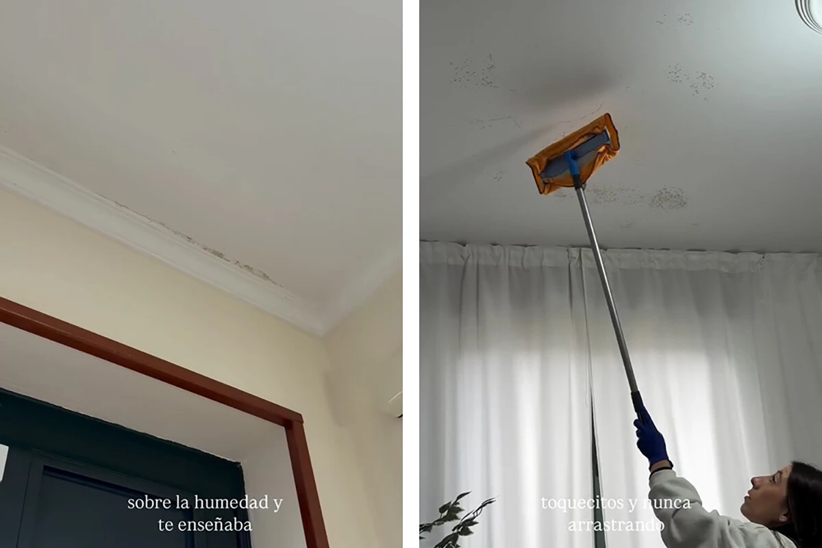 Y es que, según Andrea, mucha gente comete el error de solo pasar la bayeta sin frotar. Esto es contraproducente, ya que, en lugar de quitar las antiestéticas manchas, lo que conseguirás es que las esporas del moho se expandan o que la pintura se dañe.