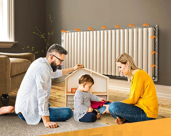 Con él en teoría evitamos que se desperdicie parte del calor irradiado hacia atrás por el radiador, que iría directamente a la pared, y que ahora entra de nuevo a calentar el aire de la habitación haciendo que podamos bajar el termostato y gastar menos energía.