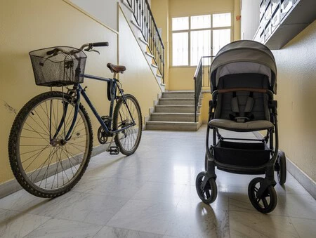 Bicicletas, patinetes, carritos del bebé o hasta de la compra son habituales en rellanos y descansillos: la Ley de Propiedad Horizontal, el Código Civil y los estatutos son tajantes