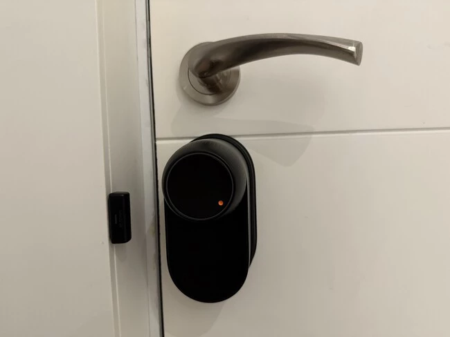 Una vez entendido esto, la configuración fue fluida. Solo fue necesario calibrar la cerradura colocando un pequeño imán en el marco, que permite detectar cuándo se abre o se cierra la puerta. Son apenas dos o tres pasos que se realizan con la puerta abierta para comprobar el correcto funcionamiento.
