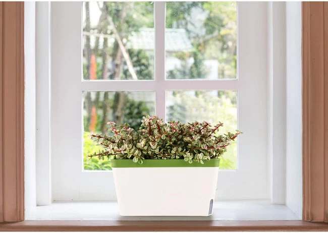 Por ejemplo, tenemos las clásicas jardineras con depósitos especiales para el agua que podemos rellenar a voluntad y que además tienen indicadores que muestran el nivel de riego restante. Las versiones básicas suelen ser económicas y muy fáciles de encontrar en casi cualquier tienda de jardinería o vivero cercano, como este modelo por 25,99 euros a la venta en Amazon o este otro modelo de maceta con depósito de riego transparente en su base por 19,89 euros.