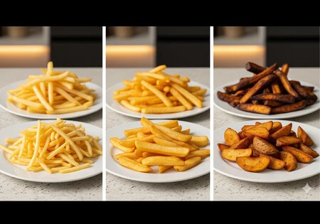 En cuanto a los niveles de grasa, según la OCU, una patata frita clásica puede contener alrededor de 20% de grasa, mientras que una cocinada en freidora de aire tiene entre un 2 y 4% de grasa. Esto implica una diferencia de unas 300 kcal en 100 gramos de patatas fritas en aceite frente a 100 kcal en freidora de aire.