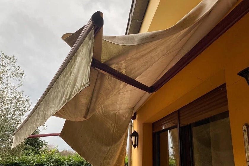 Si dejas un toldo abierto durante un vendaval y este sale volando o se desprende causando daños a un vecino (por ejemplo, rompiendo una ventana inferior) o a un viandante, la responsabilidad civil recae sobre el propietario.