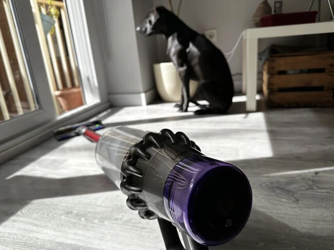 El problema principal era que el robot solo limpiaba el suelo, pero ahora había pelos en el sofá, en las camas, en las sillas… y el cepillo tradicional no terminaba de ser eficaz. Por eso decidí invertir en una aspiradora sin cables. Tras pensarlo detenidamente, ya que el desembolso no era pequeño, me decanté por un modelo de Dyson (había leído y escuchado muy buenas opiniones).