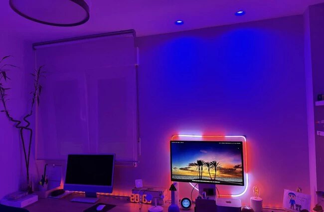 En la habitación instalé varias tiras LED (dos modelos tipo neón en la pared y una en la mesa), además de una bombilla conectada en una lámpara de sobremesa. El resto de la iluminación depende de un ventilador de techo y cuatro bombillas inteligentes de la marca Tapo, que son precisamente las que me han dado más de un problema que he tenido que resolver de la forma más insólita.