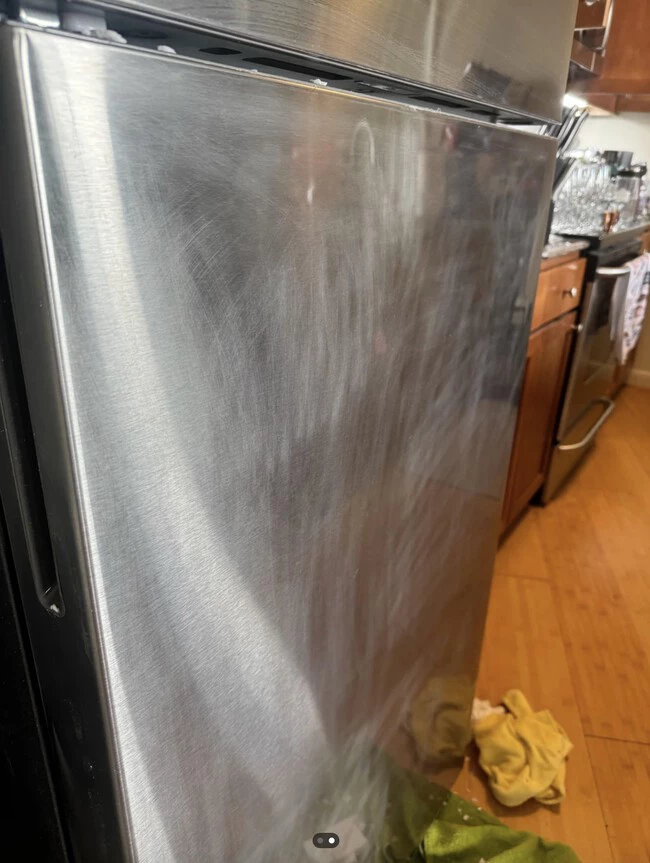 En el caso del usuario de Reddit que pedía consejo, él mismo explica que para limpiar la parte exterior de su nevera utilizó un producto diseñado para fregaderos de acero inoxidable. A esto se suma que no lo aplicó siguiendo la dirección adecuada y, para colmo, empleó la parte rugosa del estropajo. En resumen: cometió todos los errores posibles.