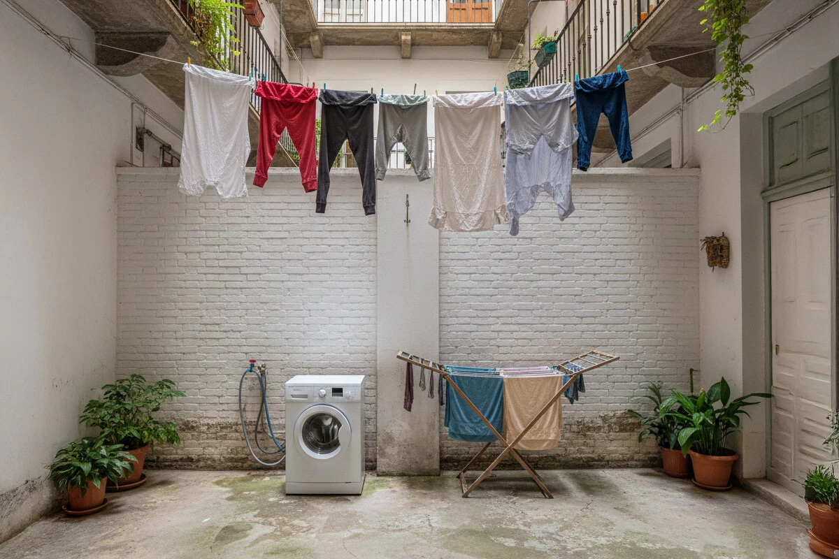 De hecho, instalar una lavadora (sin obras fijas ni perforaciones en muros), colocar un armario de plástico o usar un tendedero puede considerarse parte del contenido básico de ese derecho de uso. Prohibirlo, en la práctica, sería dejar el patio como un simple elemento “de adorno”.