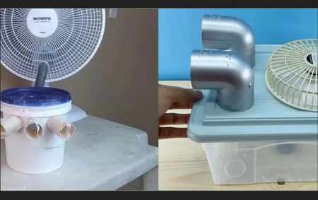 Es por ejemplo el caso de este vídeo donde usan un ventilador de pie y una caja de poliespán, este otro donde se usa un cubo de plástico o este vídeo donde se recicla un táper y tiene una apariencia más "profesional".