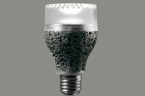 Según el estudio, la bombilla tiene que ser un elemento reparable del hogar, y para ello el plástico exterior no es bienvenido, siendo sustituido por aluminio fundido, mucho más resistente y duradero, pero que además permite algo que parece lógico y que cuesta creer nadie haya implementado antes: un sistema de disipación efectiva del calor.