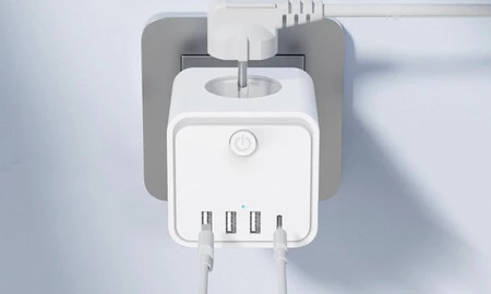 Su tamaño es muy compacto y solo mide 7,4 x 7,4 cm, lo que hace que, además de para casa, sea un accesorio perfecto para llevarte de viaje y poder cargar tu móvil, tablet, portátil o cualquier otro dispositivo en un mismo enchufe.