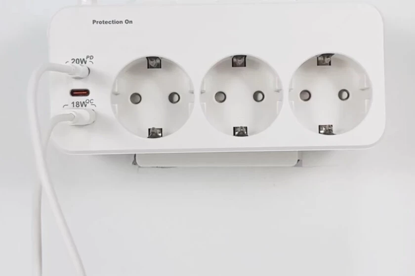 Cuenta con tres tomas de corriente, cada una de ellas con un interruptor independiente. Además, viene con dos puertos USB-C y otro USB-A, que también cuenta con un interruptor independiente. Esto te permitirá controlar individualmente el encendido/apagado de cada interruptor, lo que se traduce en un ahorro de energía.