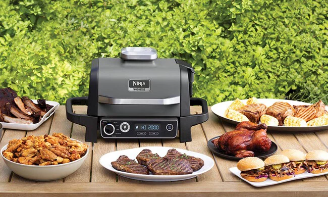 Barbacoa Eléctrica De Exterior Con Ahumador + Freidora De Aire 7 En 1 Ninja Woodfire Og701eu
