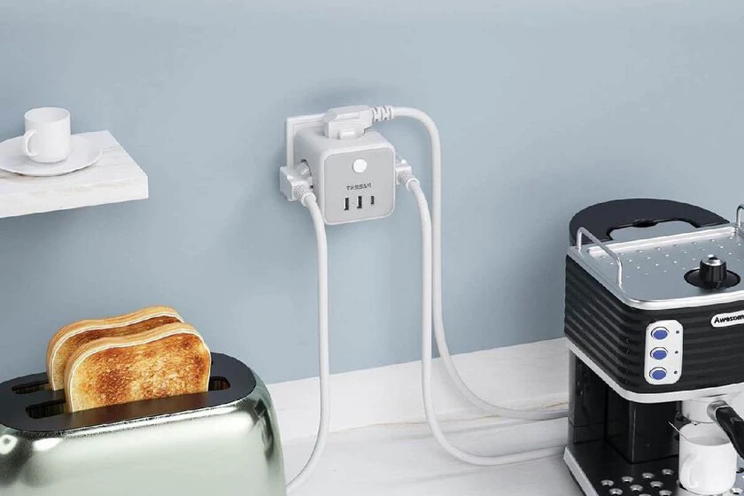 Hoy en día, las cocinas suelen ser pequeñas y en la encimera solemos tener varios pequeños electrodomésticos encima que nos facilitan el cocinado diario. Eso sí, lo normal es no contar con suficientes tomas de corriente. Aunque esto es algo que se puede solucionar fácilmente y sin tener que tener una regleta en la encimera con una de tipo cubo como esta de Tessan. Su precio es de 21,99 euros en Amazon.
