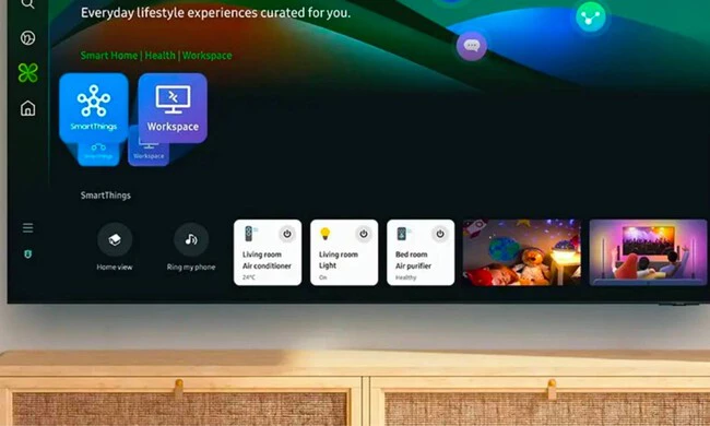 Viene con Bixby y Alexa integrados, para que así puedas controlarla con la voz. Además, es compatible con Multi-View (para que puedas ver varios canales al mismo tiempo) y AirPlay de Apple. Por último, en lo que a conectividad se refiere, integra dos puertos USB-A, tres puertos HDMI, además de WiFi 5, Bluetooth 5.2 y puerto Ethernet.
