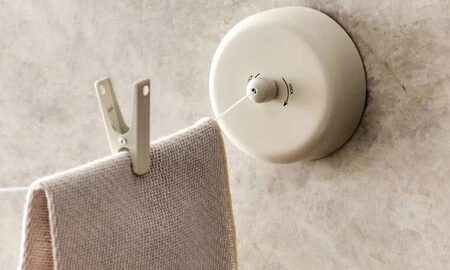 Se trata, igualmente, de un tendedero retráctil en acero inoxidable y acabado metálico. Al igual que el de Zara Home, tiene un diámetro de 9 cm y presenta un diseño muy robusto y duradero. Su cuerda de nylon (y de casi tres metros) es capaz de soportar hasta cinco kilos de ropa.