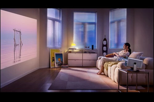 La lente zoom Leica Summicron integrada tiene una relación de proyección variable de 0.9:1 a 1.5:1 y permite diagonales de 65 a 300 pulgadas. En cuanto a la fidelidad del color, el proyector promete cubrir el 110 % del espacio BT.2020, y además cuenta con un modo de juego de hasta 120 Hz si jugamos en Full HD.