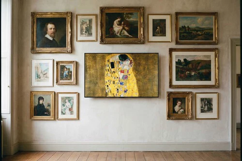 La propuesta de este televisor es integrarse en la decoración del hogar cuando no está en uso. En lugar de convertirse en una pantalla negra apagada, muestra imágenes pensadas para encajar con el entorno, logrando un efecto visual similar al de un cuadro o una lámina decorativa colgada en la pared.