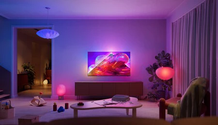 La experiencia de visualización se completa con la inclusión de una versión de tres lados del sistema Ambilight, incluida la nueva función AmbiScape con la que conectar bombillas y lámparas de otras marcas como Ikea, Hue y otros fabricantes.