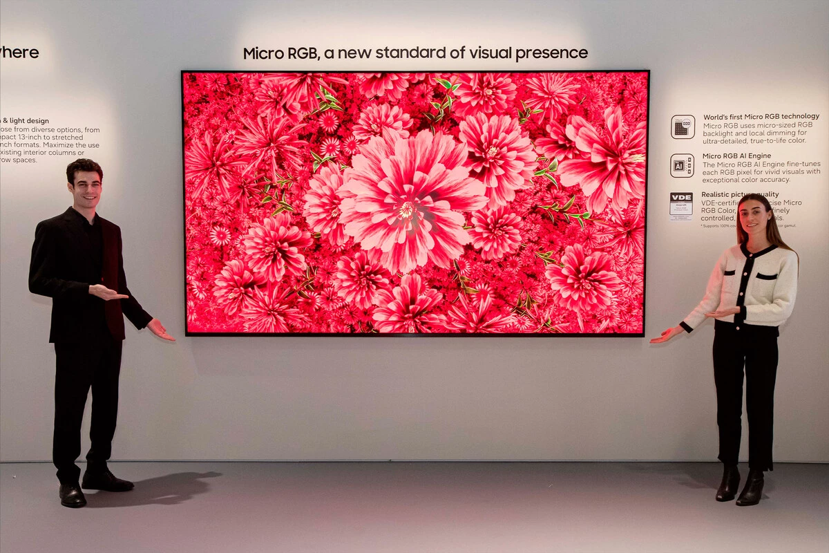 No es para nosotros digo, porque aunque se trata de una una gran pantalla, de 85 pulgadas, con el nuevo tipo de panel de la marca, el Micro RGB, resolución 4K y con la misma característica que hizo destacar al Samsung Odyssey que mencionaba más arriba: el 3D sin gafas, el ámbito de Spatial Signage no es el hogar.