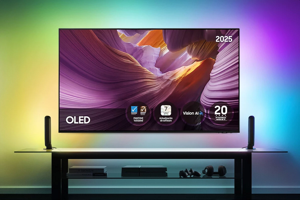 Este televisor pertenece a la gama OLED 2025 de Samsung, y como tal, viene con Tizen 9 como sistema operativo, aunque gracias a sus 7 años de actualizaciones, se podrá actualizar a Tizen 10 sin problema.