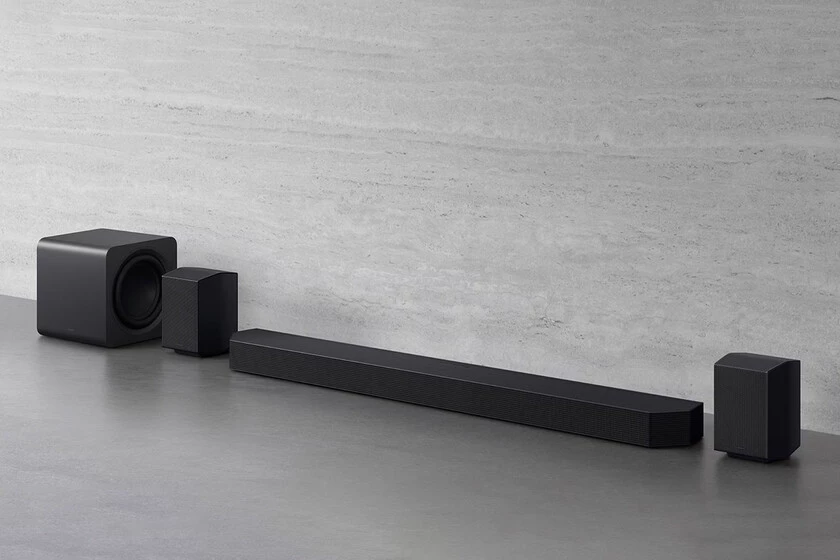 El sonido se distribuye en 11.1.4 para su nada menos que 23 altavoces, pero lo mejor es su potencia, realmente bestial, con 756 W. En cuanto a sistemas de audio, con el sello de Samsung ofrece SpaceFit Sound Pro o Q-Symphony, con el que podremos aprovechar todos los altavoces, de este equipo y de nuestra tele Samsung, todo ello con una sincronización sin igual entre ellos. Pero también ofrece compatibilidad conm otros sistemas no propietarios, como Dolby Atmos o DTS:X.