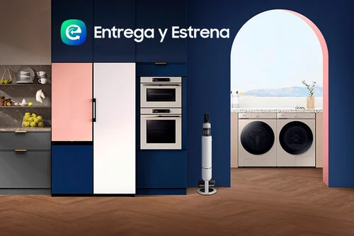 Para conseguir el descuento Samsung lo pone muy fácil. Debemos ir a la web de Samsung y elegir nuestro electrodoméstico. Para ponerlo en la cesta debemos marcar Sí en la opción "Samsung Entrega y Estrena".
