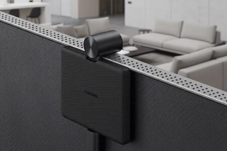 La cámara se fija magnéticamente al televisor y está pensada para no romper la estética de la pantalla. Es capaz de conseguir una resolución de 1080p a 30 fps, algo que ya deja claro que no estamos ante una cámara testimonial, sino ante una pensada para verse bien en videollamadas normales.