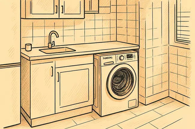 En un piso pequeño, la cocina suele ser el lugar más lógico. Ya tienes toma de agua, desagüe y enchufe preparados, y además el ruido queda más “integrado” en la zona de trabajo.